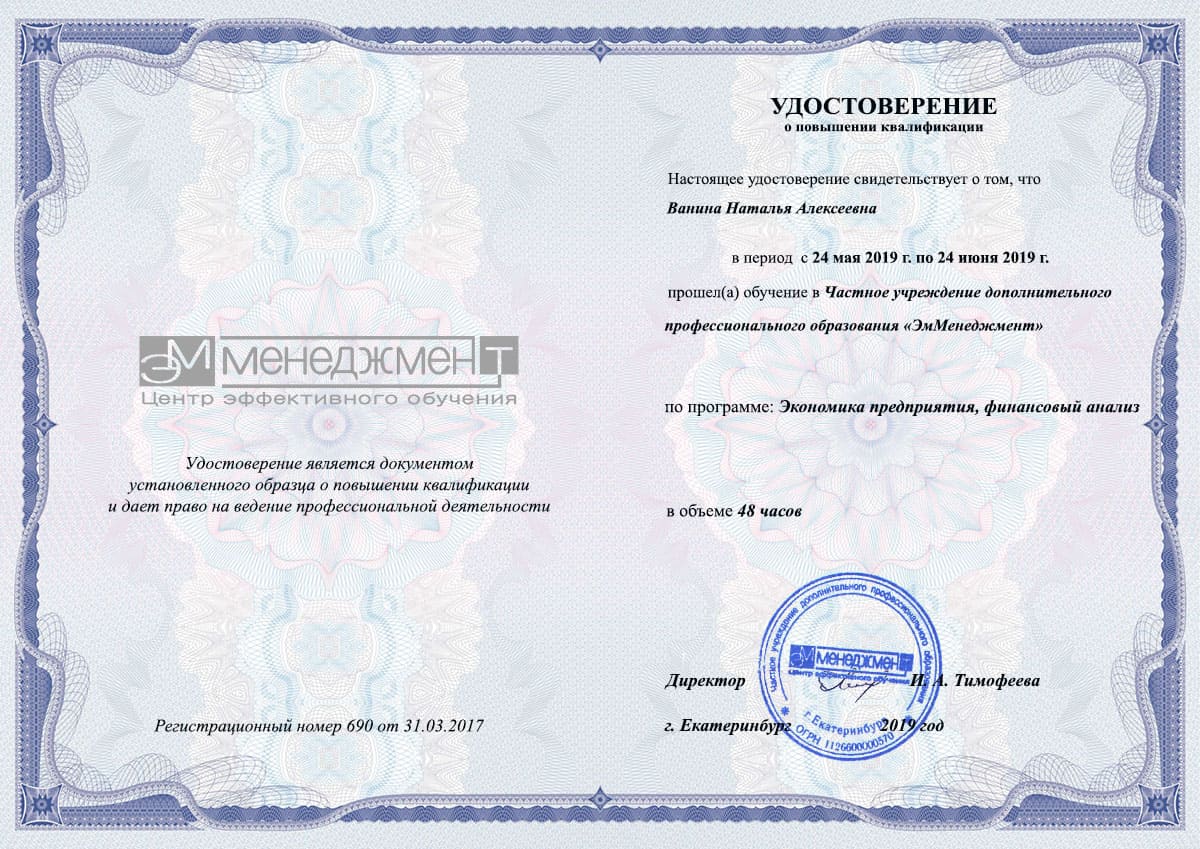 Повышение квалификации и расширение сфер деятельности – необходимое условие для успешного роста в нынешних реалиях. Центр обучения ЭмМенеджмент в Воронеже имеет лицензию министерства Образования и по окончанию курса выдается удостоверение государственного образца. Пройденный курс финансового анализа – хорошая инвестиция в себя и конкурентное преимущество при трудоустройстве на предприятие.